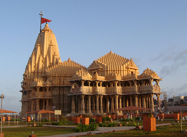 The intricately carved honey-coloured Somnath temple on the western edge of the state is believed to be the place where the first of the twelve holy jyotirlingas emerged in India – a spot where Shiva appeared as a fiery column of light. The temples lies at the meeting of Kapila, Hiran and Sarasvati rivers and the waves of the Arabian Sea ebb and flow touching the shore on which it is constructed.